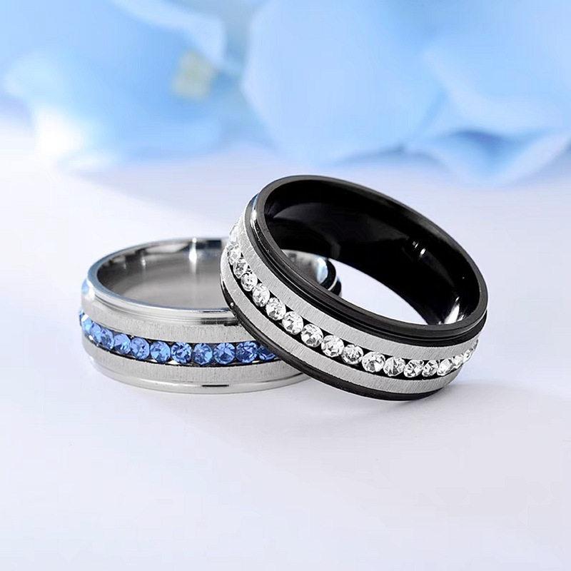 Single Row Diamond Titanium Steel Ring for Men, Light Luxury Niche Couple Diamond Ring for Women, Cross-Border E-Commerce Wholesale, Couple Style Full Diamond