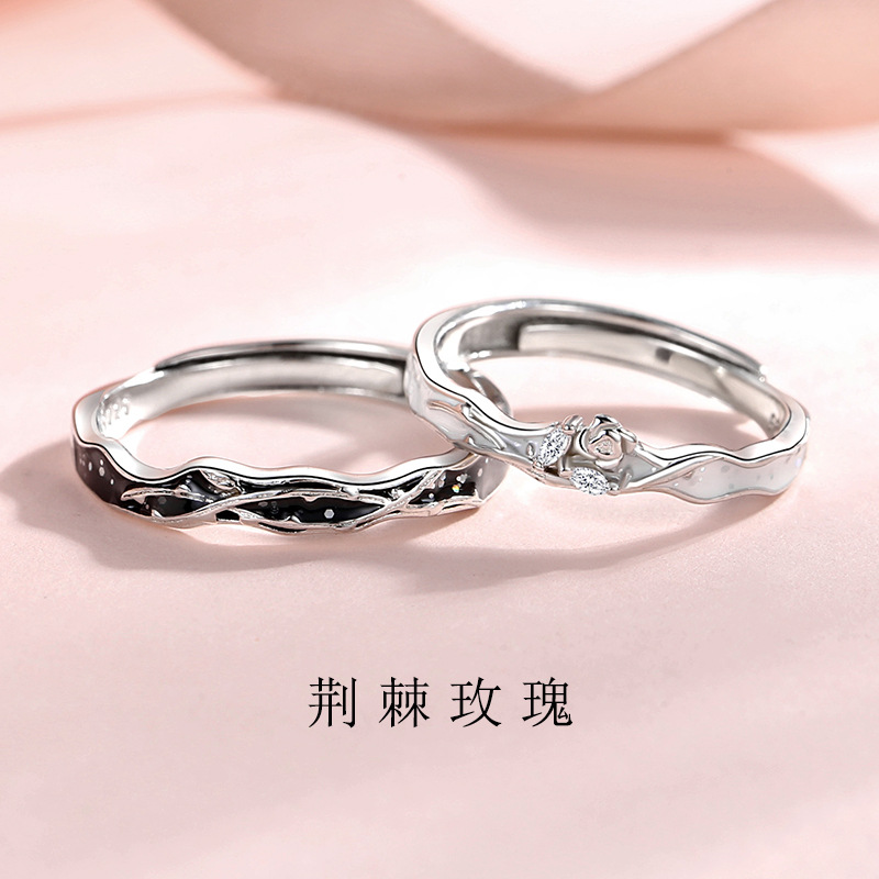 Original S925 Sterling Silver Thorns Rose Couple Ring Female Male Pair Light Luxury 2024 New Opening Ring