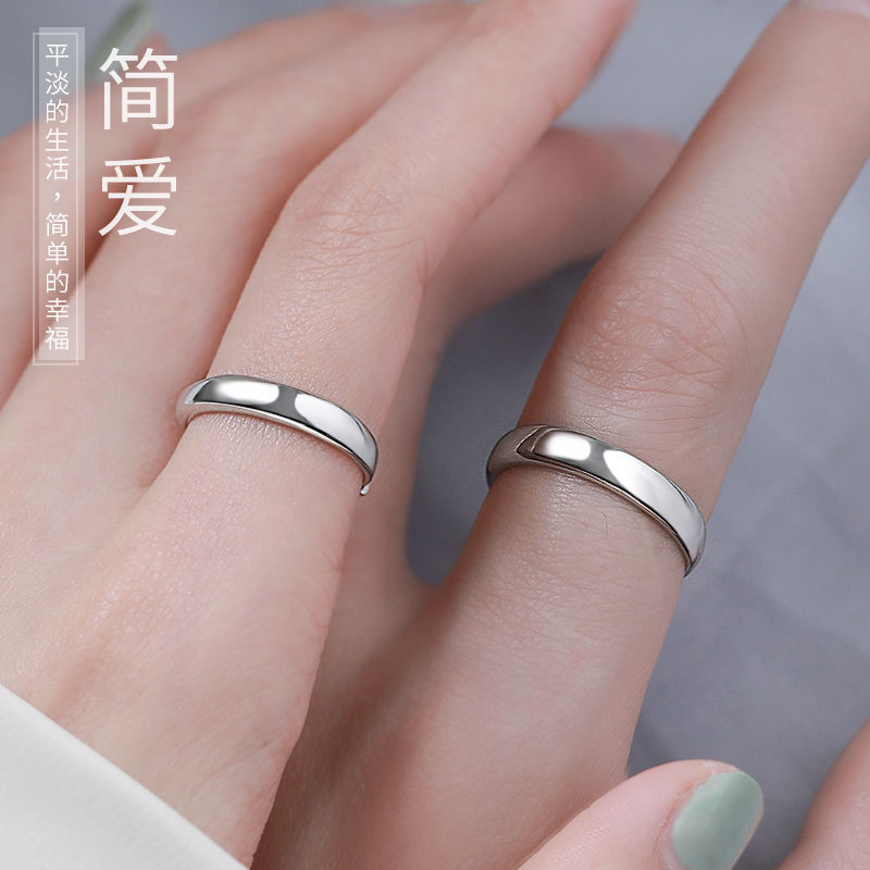 Silver-plated jewelry couple ring a pair of female plain ring men's niche design advanced cold style self-discipline ring