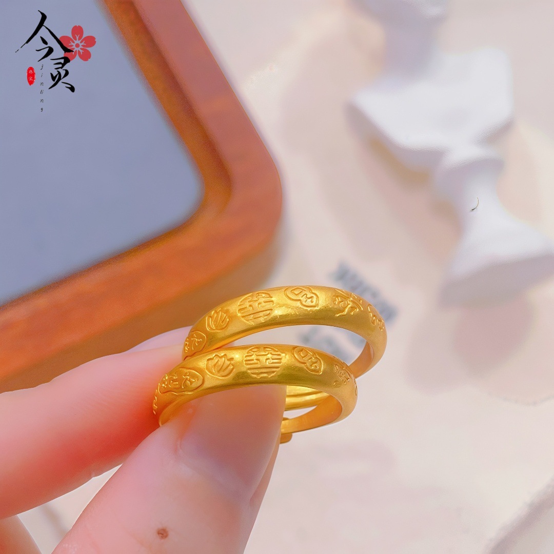 New Chinese-Style Gold Shop Same Model Sand Gold Ancient Fortune Ring Yellow Gold Unisex Versatile Personalized Jewelry Wholesale