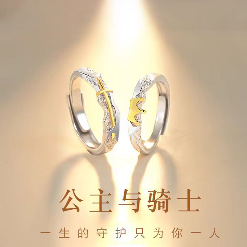 Princess and Knight Couple Rings, a Pair of Open Rings for Men and Women, Commemorative Gifts for Girlfriends, Versatile Rings