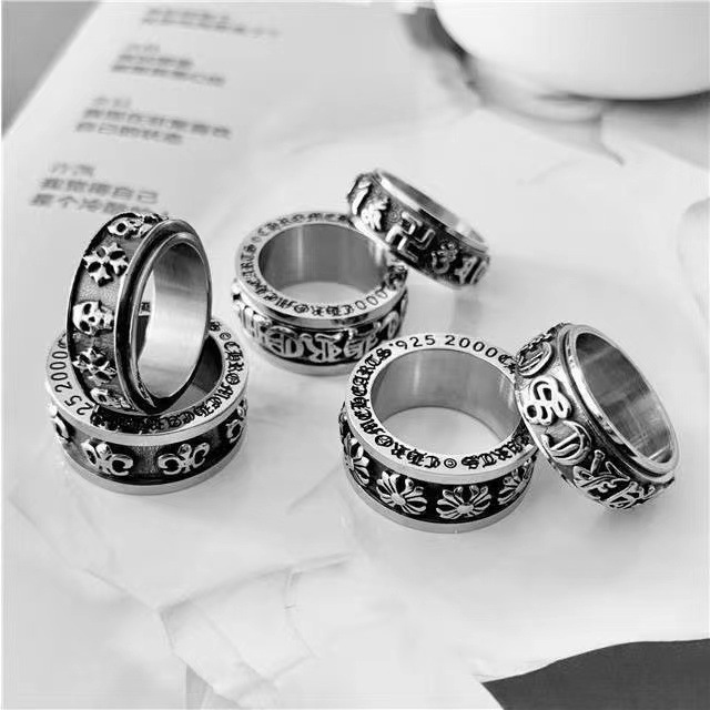 Vintage Croix Cross Flower Rotating Ring Men's Trendy Women's ins Ring Couple's Hip-Hop Rotatable Tail Ring