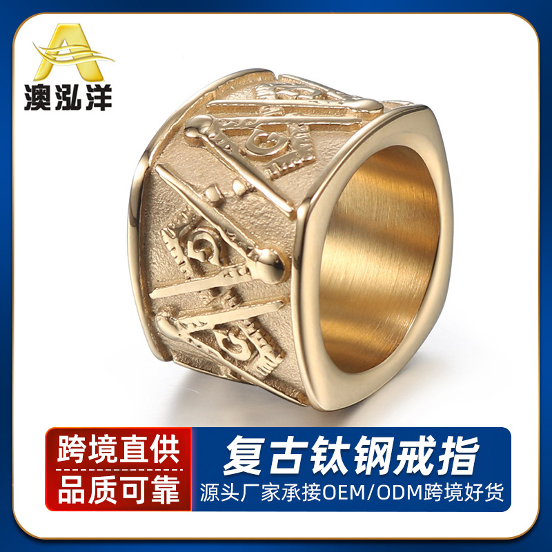 European and American Retro Titanium Steel Men's Ring Gold Speech Logo Stainless Steel Ring Jewelry Wholesale Hz101