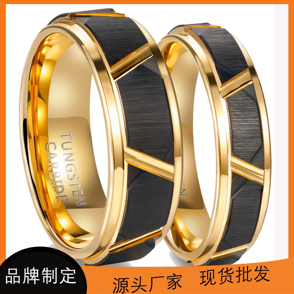 Cross-Border Tungsten Steel Men's Ring Tungsten Gold Ring Trendy Men's Personalized Groove Black Gold Width 6/8mm Tungsten Steel Ring Factory Wholesale