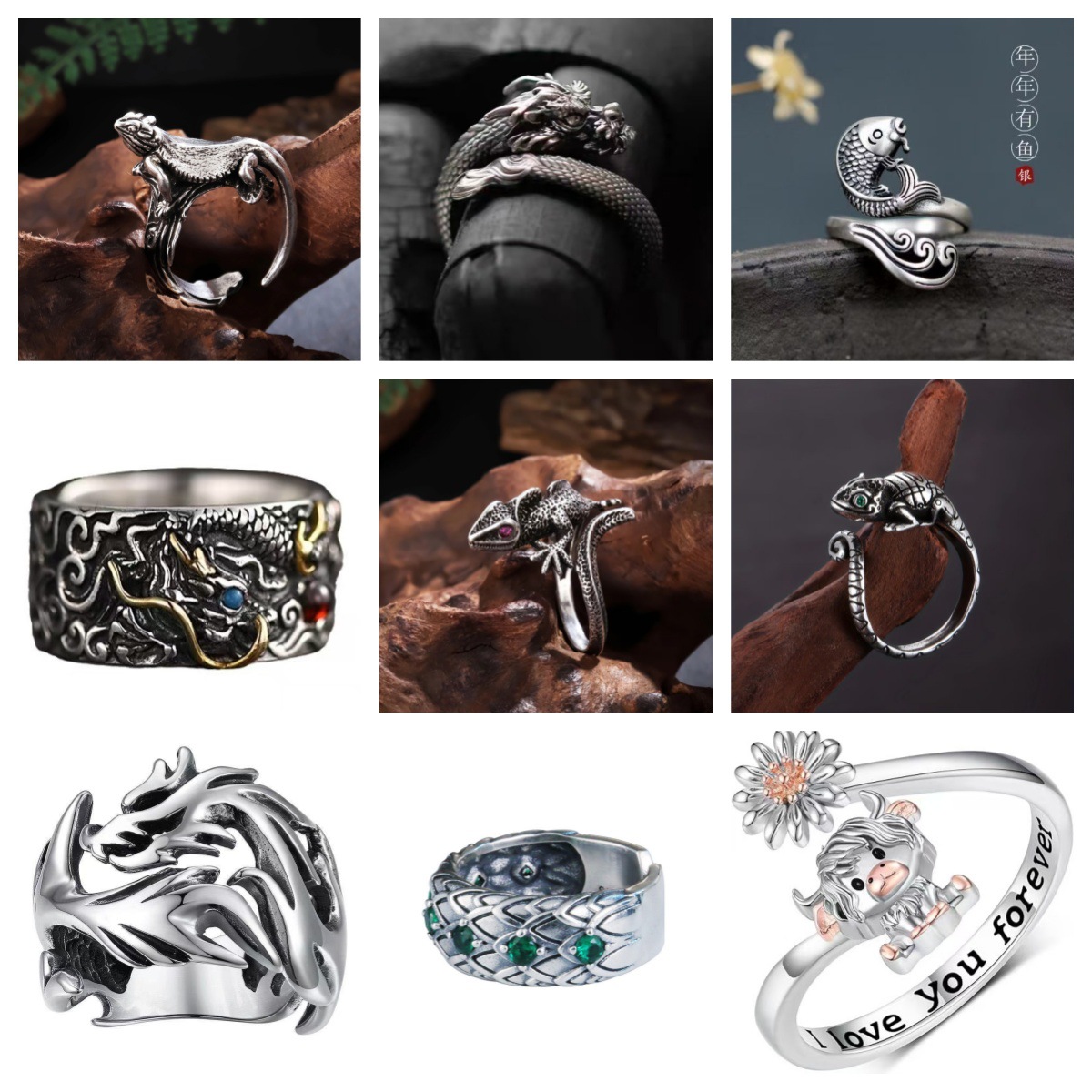 European and American Hip-Hop Animal Gecko Ring Men's Index Finger Alloy Open Ring Adjustable Manufacturer Wholesale