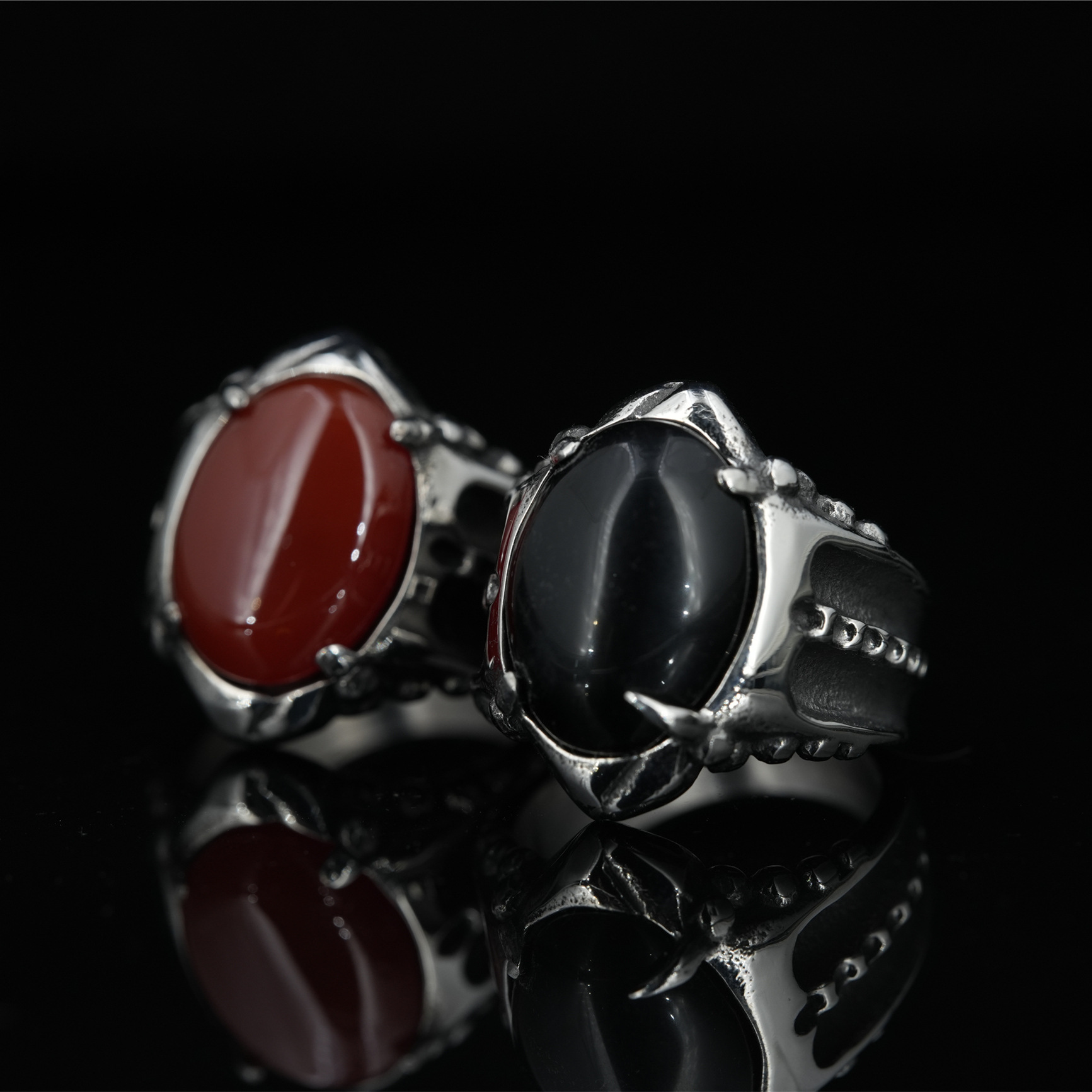 Cross-Border Jewelry Stainless Steel Men's Ring Retro Punk Non-Touch Black Five-Pointed Star Side Small Six-Pointed Star Array Ring