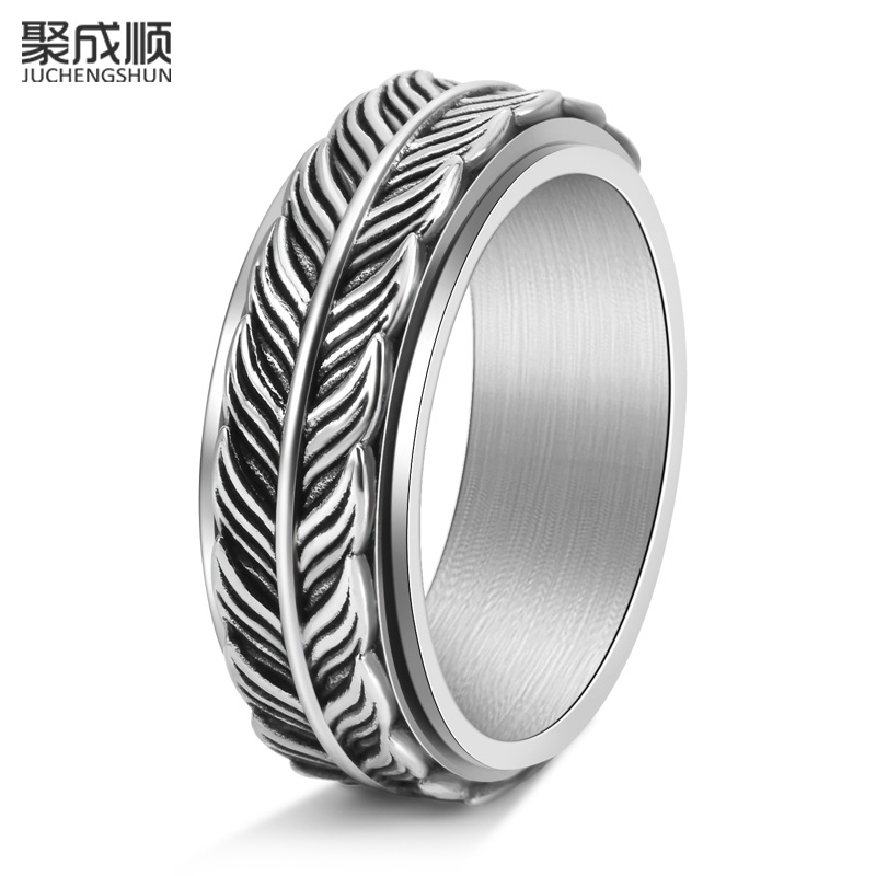 Cross-border Amazon new personality male titanium steel retro goldfish tail rotating ring fashion ring hand jewelry wholesale