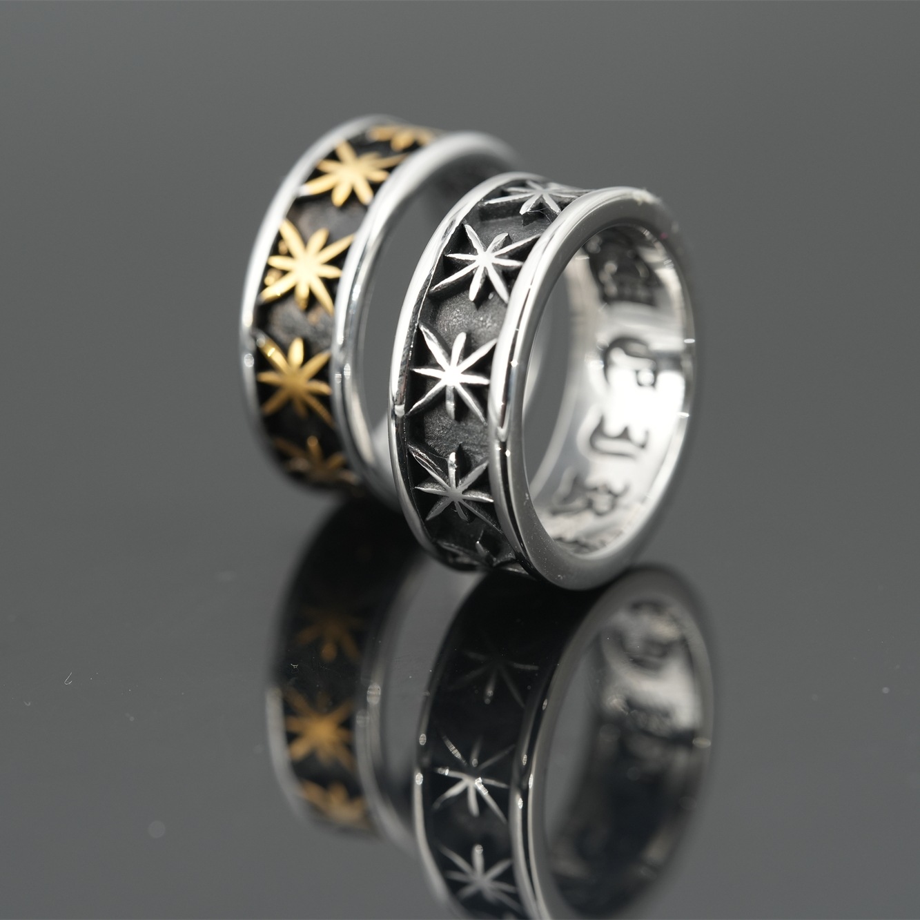Indian jewelry men's ring female niche design trendy men's fashion personality sterling silver wide ring point gold retro opening
