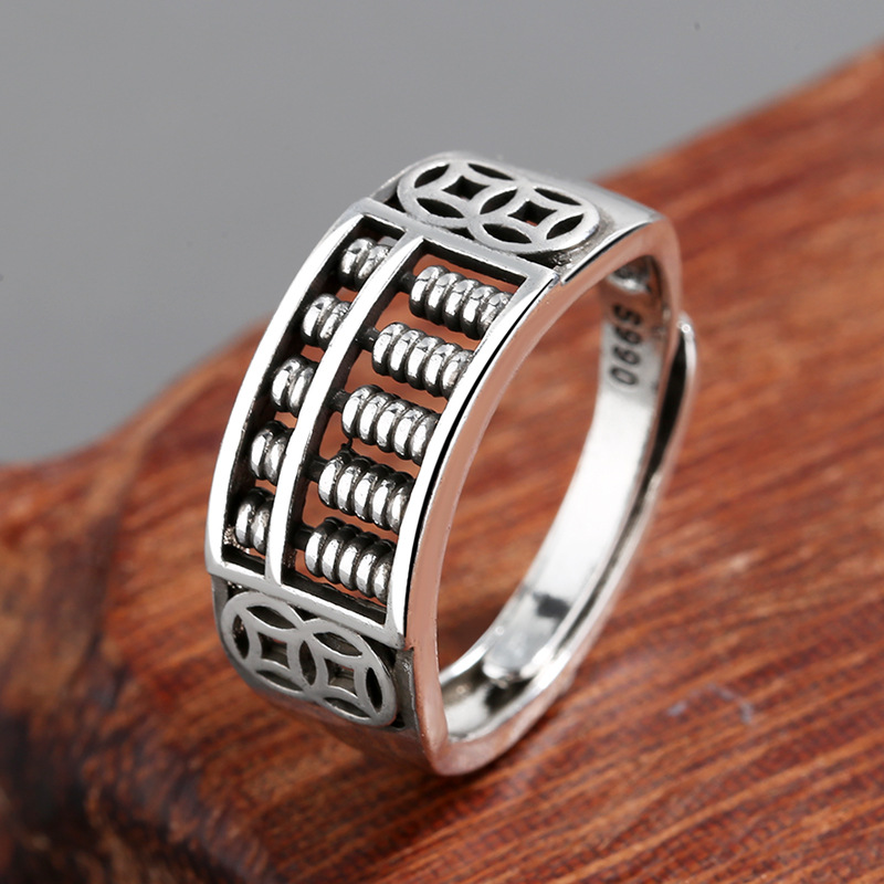 Vintage Thai Silver Coin Abacus Ring for Men and Women, Creative Fashion Simple High-End Adjustable Personalized Ring