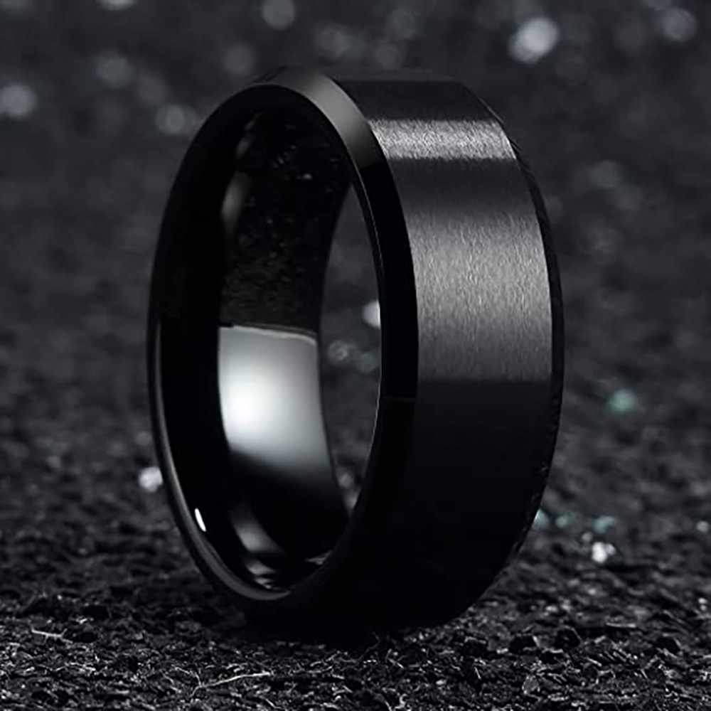 Cross-Border Amazon Hot-Selling New 8mm Black Frosted Brushed Simple Versatile Ring Tungsten Steel Ring for Men