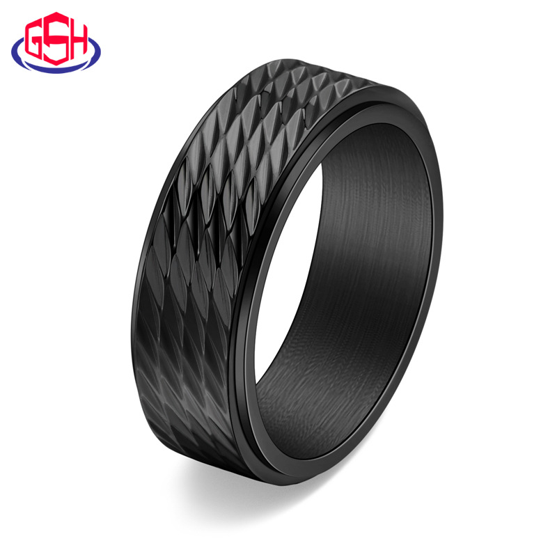 Cross-border Amazon source titanium steel Diamond Men's personalized ring rotatable Black neutral pressure relief ring