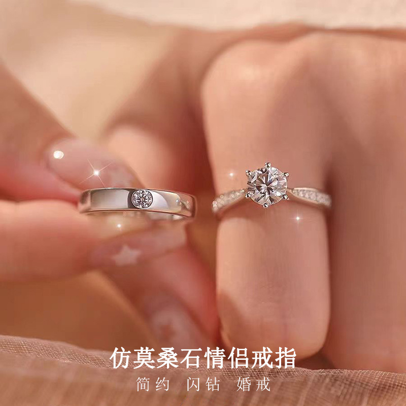 Imitation Moissanite Couple Ring, a Pair of Men's and Women's Open Rings, Niche Design Diamond Rings, Gifts for Girlfriends and Wives