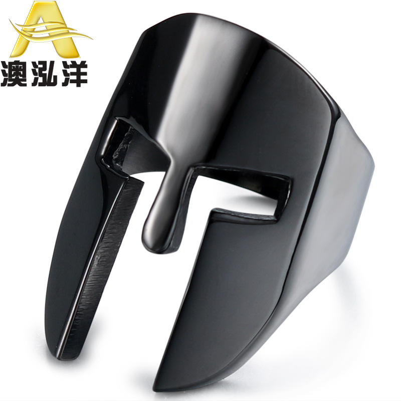 European and American Warrior mask titanium steel ring personalized men's stainless steel ring retro helmet food ring HZ159