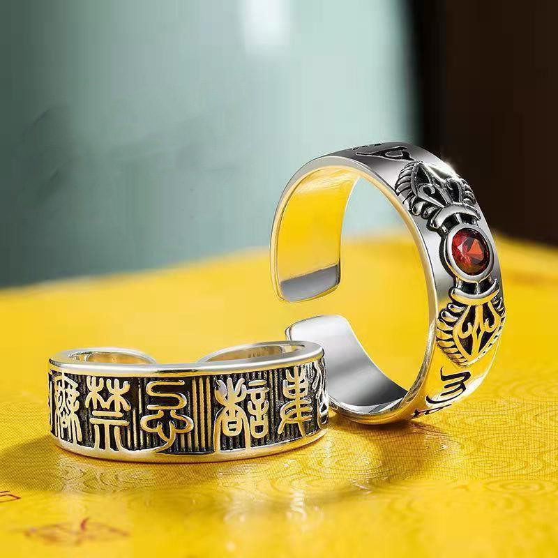 Chinese style retro lucky lucky men's ring Thai silver plated six words motto lucky treasure live ring index finger