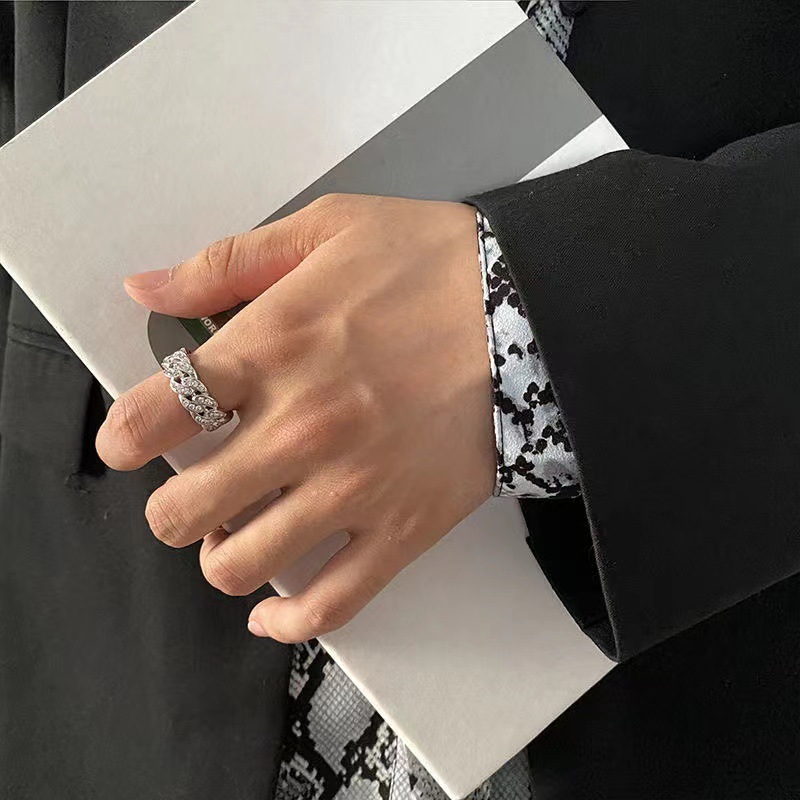 Cuban Chain Diamond Ring Men's Trendy High-grade Cold Style Fashion Hip-hop Men's Full Diamond Closed Index Finger Ring