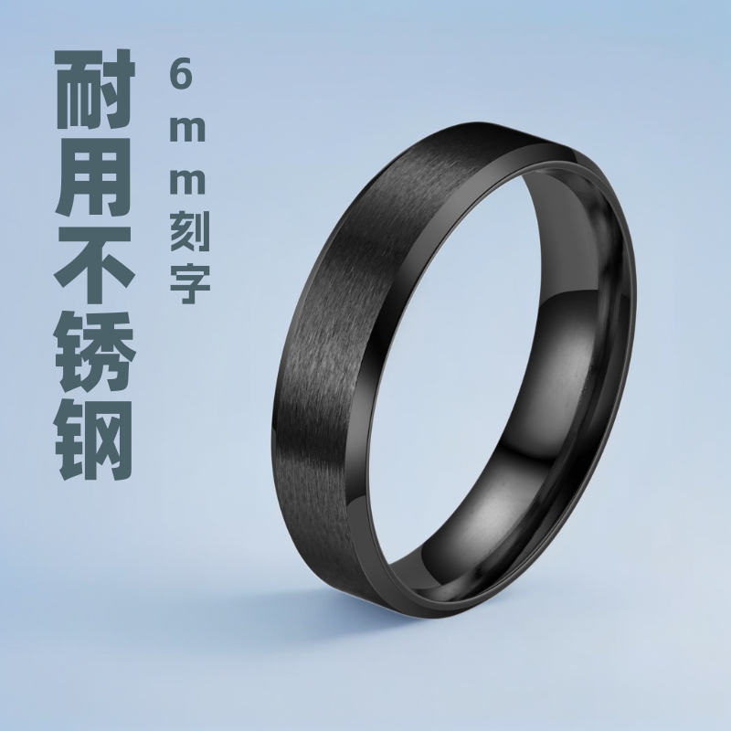 6mm matte stainless steel European and American simple retro student personality lettering single index finger boys black ring
