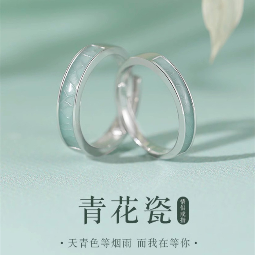 Blue and White Porcelain Couple ring female male couple niche design high sense ring birthday gift for girlfriend jewelry