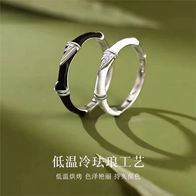 Bamboo Couple Silver Rings for Women and Men, Niche Bamboo Design, High-End Ring Gift for Girlfriend