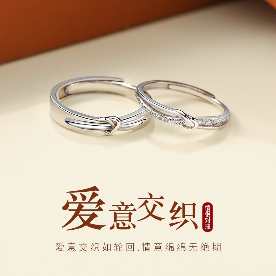 Love interwoven sterling silver couple ring a pair of female men's light luxury niche design ring Valentine's Day gift for girlfriend