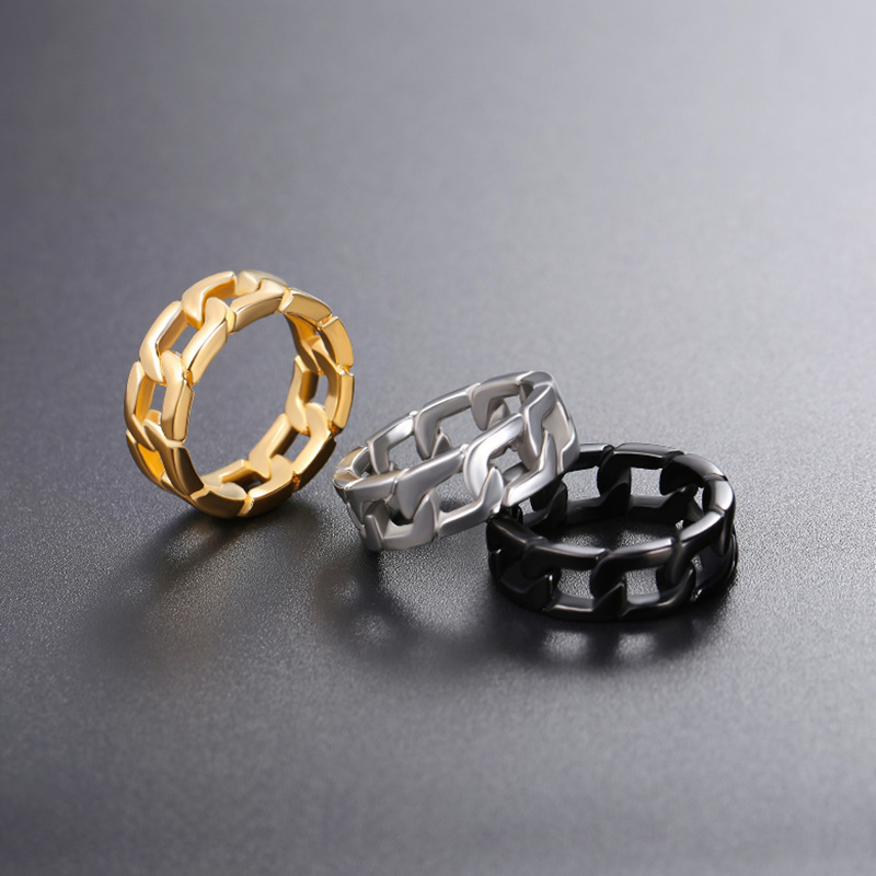 European and American Fashion Hip-Hop H Cuban Titanium Steel Ring Men's Wishr Chain Ring Ap Popular Trendy Amazon Op