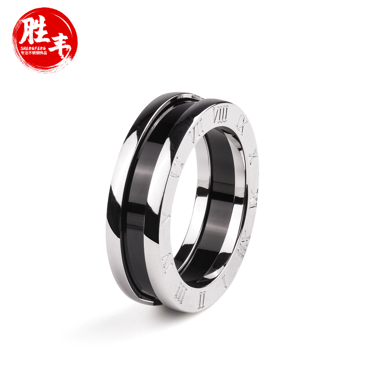Jewelry factory wholesale ring ring tide cool titanium steel imitation ceramic ring Tide men's ring factory direct sales