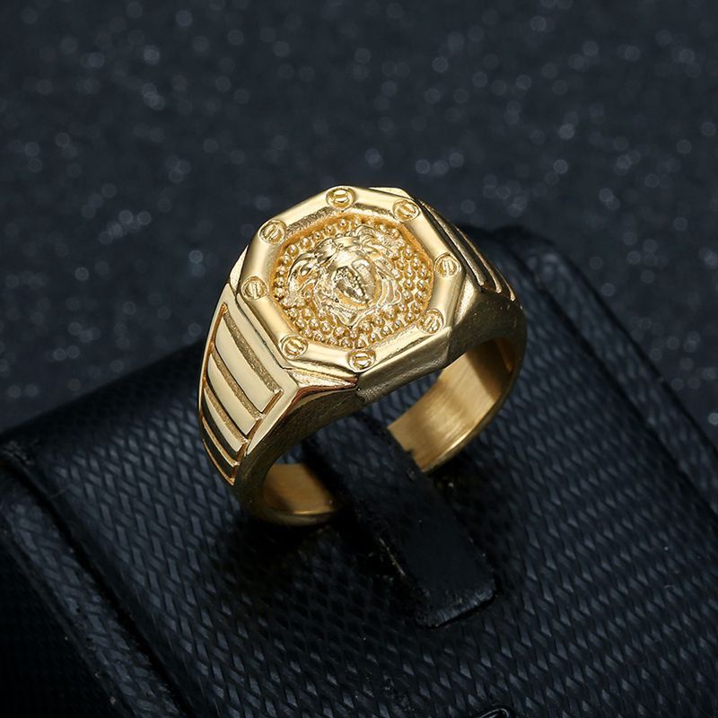 European and American new fashion brand hip hop HIPHOP titanium steel vacuum plating Greek mythology beauty head men's ring