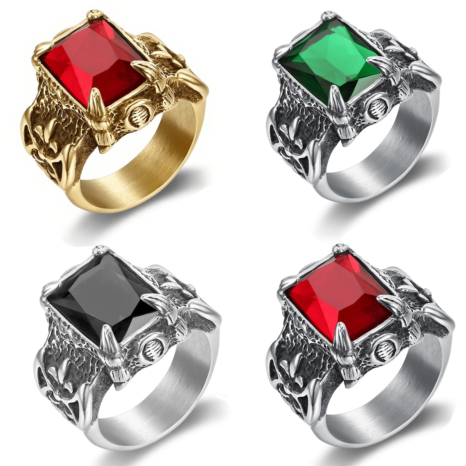 Amazon Ebay Best-Selling Jewelry European and American Retro Bold Personality Titanium Steel Men's Gemstone Ring in Stock