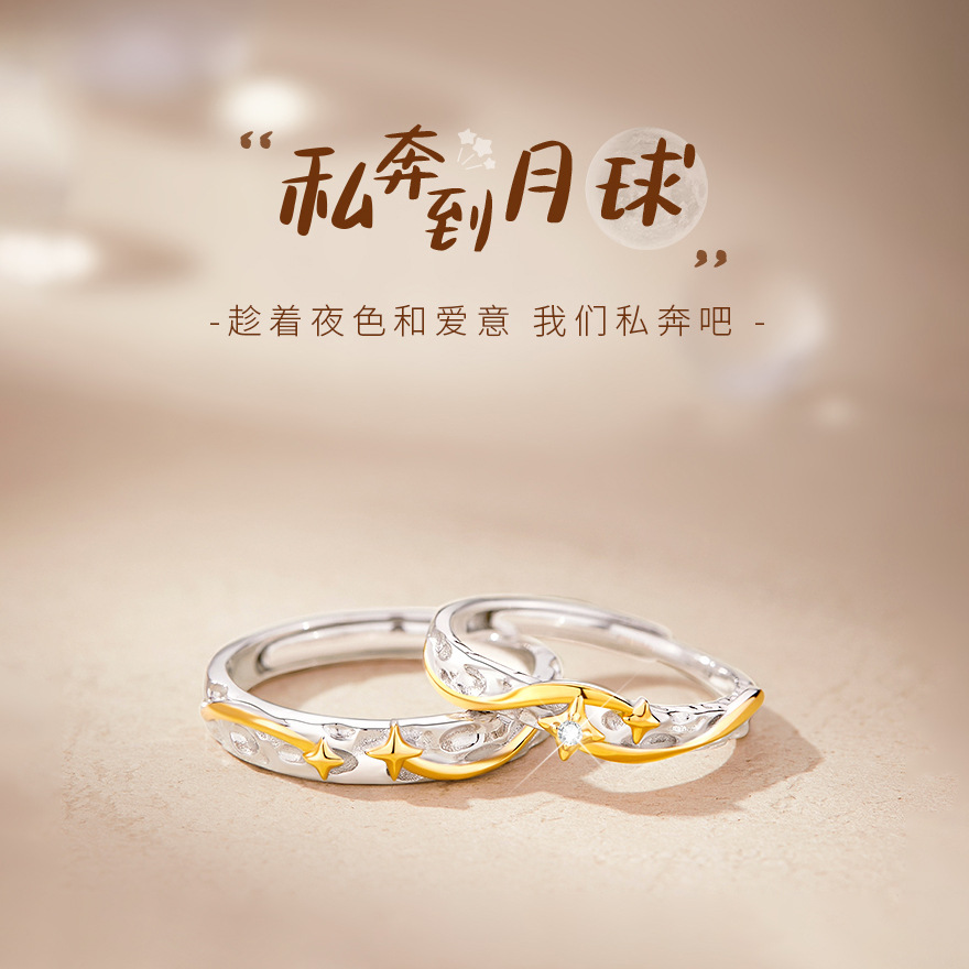 Elope to the Moon S999 Silver Couple Ring Men's and Women's Star Ring Light Luxury Advanced Couple Ring Gift