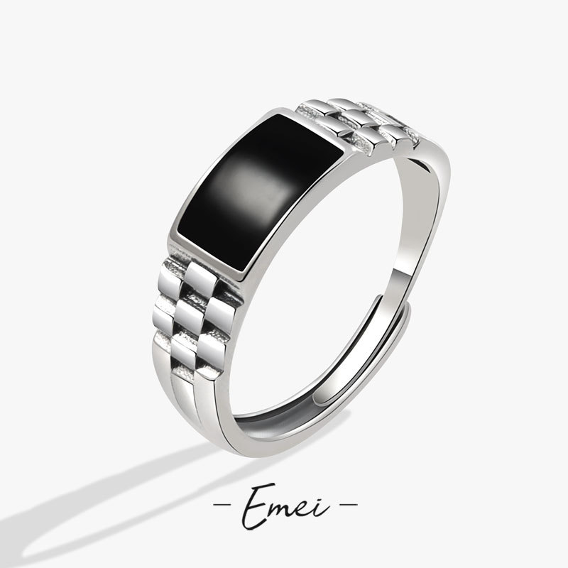 Chess ring fashion high-grade cold wind geometric finger ring men's black retro glue single ring jewelry