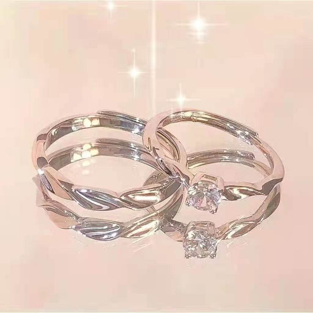 Shining Galaxy couple ring light luxury ins niche design diamond ring Valentine's Day 520 gift for male girlfriend meaning