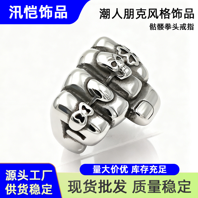 Trendy Punk Skull Fist Titanium Steel Ring Men's Personality Niche High-End European and American Hip-Hop Style Ring
