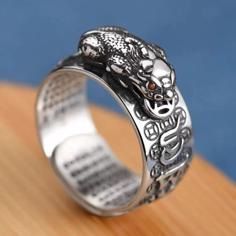 Retro Thai silver six-character truth heart sutra fortune transfer brave men's ring personality domineering hip-hop open ring