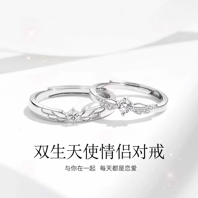 Twin Angel Couple Ring for Men and Women Simple All-match Ring Qixi Festival Birthday Gift for Girlfriend