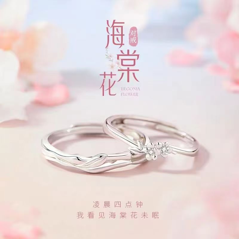 Begonia Flower Couple's Ring Ring for Men and Women's Niche Light Luxury Fresh Design Commemorative Gift 2025 New