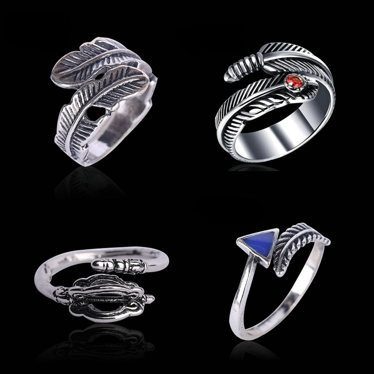 Retro European and American Fashion Style Men's and Women's Couple Ring Feather Eagle Claw Domineering Ring Ring Fashion Tail Ring Accessories