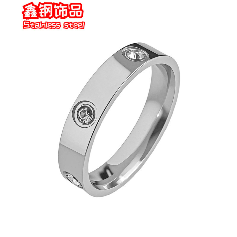 Popular Full Diamond Ring Titanium Steel Light Luxury High-End Couple Ring Fashion Light Luxury Stainless Steel Ring Women's Hand Jewelry