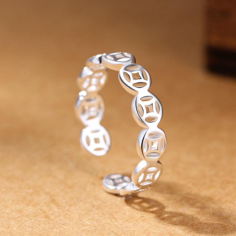 Shake Voice Live Fashion Money Silver Plated Ring Men's and Women's Student Copper Coin Living Food Ring Simple Hand Jewelry