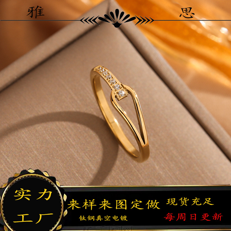 Japanese and Korean Titanium Steel Ring Women's Extremely Fine Inlaid Small Diamond with Diamond Color-free Fashion All-match Simple Simple Simple Simple Ring Elegant Design