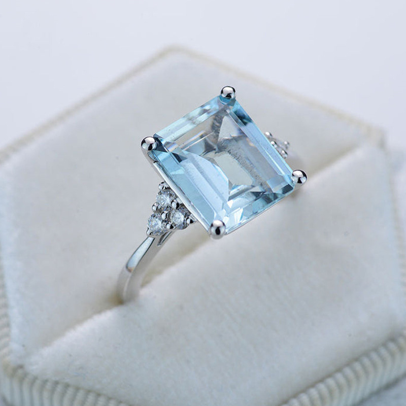 Jiuqin Jewelry Factory temu shein European and American Cross-border Hot Selling Ladies Ring Blue Wedding Proposal Ring