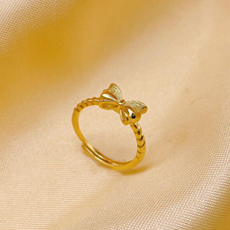 Bow ring women's fashion temperament on the run Princess twist plain ring adjustable open mouth gift for girlfriend
