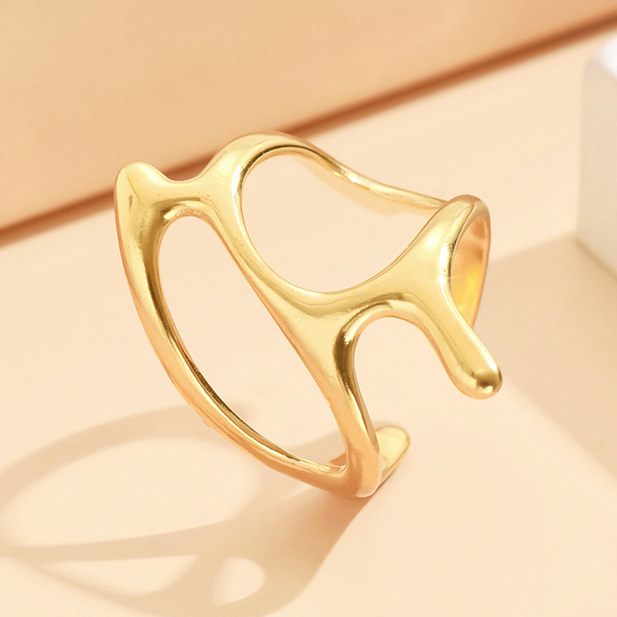 Cross-Border Personalized Ins Style Cut Out Special-Shaped Open Ring for Women Versatile Oil Pressure Stainless Steel Vacuum Plated 18K Gold Jewelry