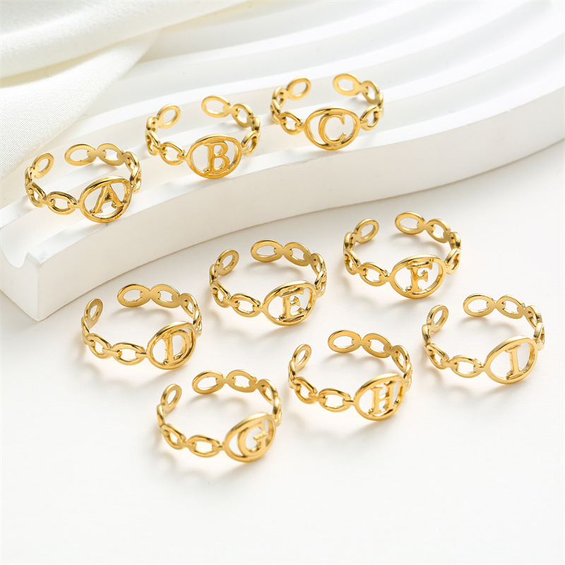 Cross-border European and American Titanium Steel 26 English Letter Ring 18K Fashion Simple Stainless Steel Opening Adjustable Ring for Women
