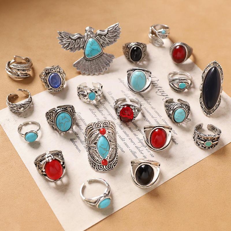 Xizang retro ethnic style ring carved exaggerated Bohemian exotic waste soil wind opening medieval ring female