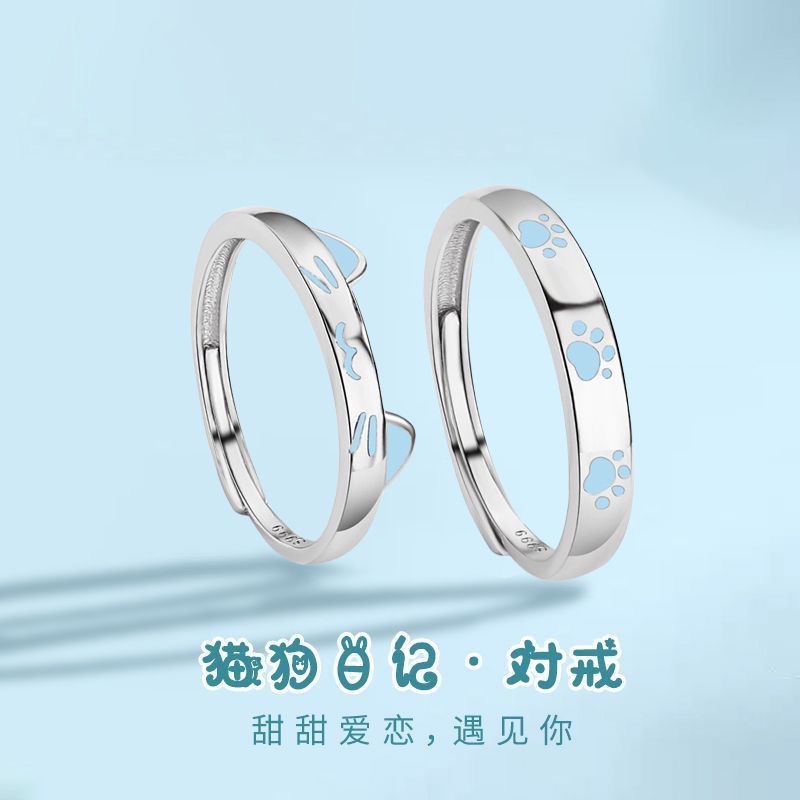 New puppy kitten ring female micro inlaid love zircon cat claw sweet opening all-match finger ring for girlfriends