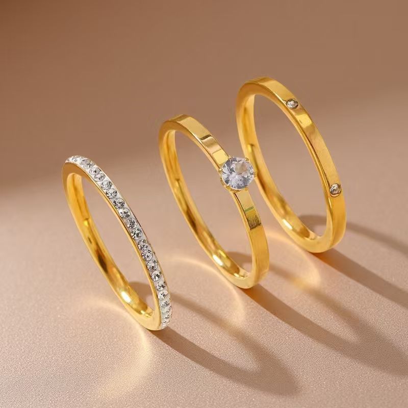 Cross-Border Hot-Selling Stainless Steel Diamond Ring Ring for Women Niche Design Titanium Steel Ring Gold Large Diamond Three-Piece Set