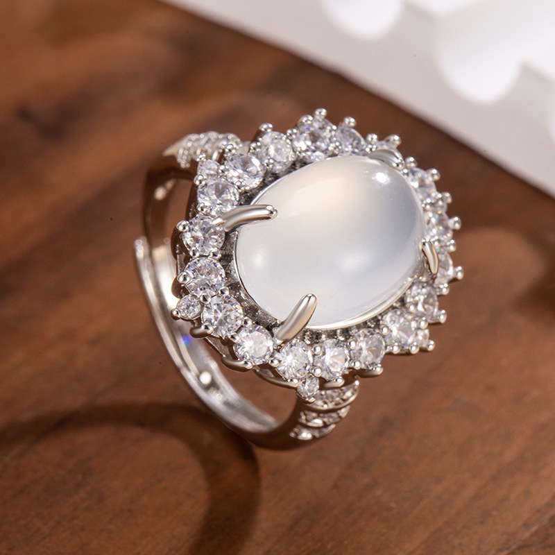 New Chinese-style Imitation Chalcedony Large Pigeon Egg Ring for Women Niche Design Light Luxury High-end Adjustable 2025 New