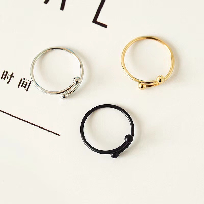 Cross-border New Style Simple Stainless Steel Adjustable Ring Women's Niche Ins Double Bead Ring Ring