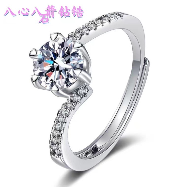 Cross-border fast hand jewelry opening couple ring women's six-claw wedding ring ring net red live stall factory straight hair