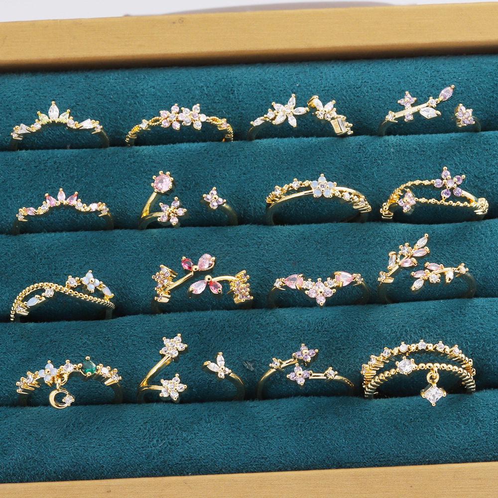25 New Super Fairy Flash Diamond Butterfly Flower Rings for Women Niche Design High-Looking Small Fragrance Girl Pink Ring