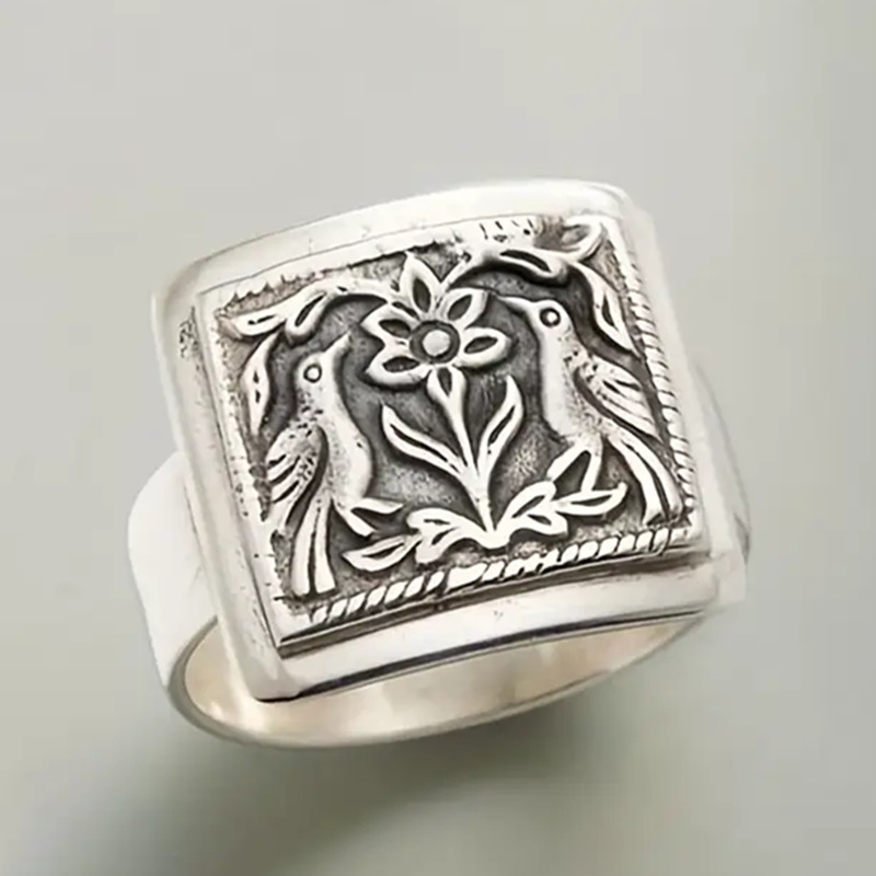 Cross-border temu Popular Bohemian Retro Ladies Hot Selling Bird Flower Fashion K-style Ring Couple Jewelry